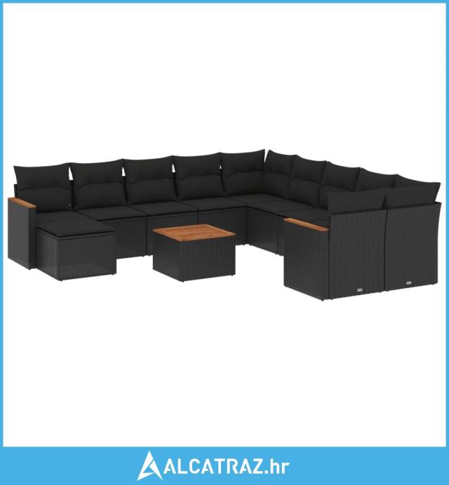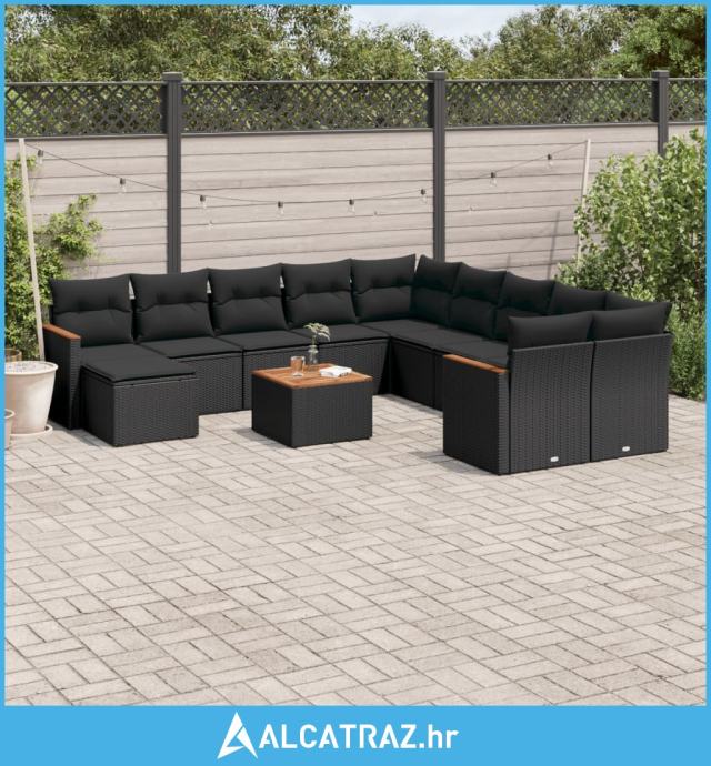 12-dijelni set vrtnih sofa od poliratana s jastucima crni - NOVO