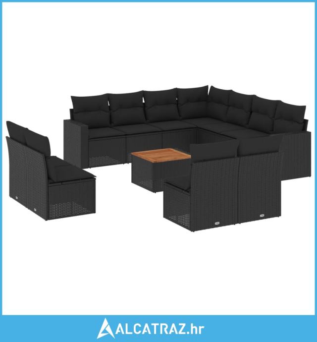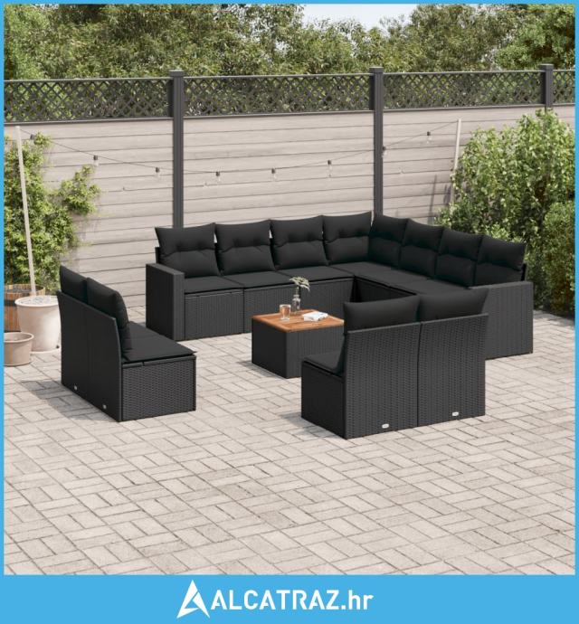 12-dijelni set vrtnih sofa od poliratana s jastucima crni - NOVO