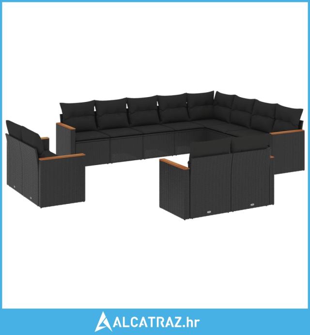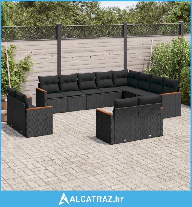 12-dijelni set vrtnih sofa od poliratana s jastucima crni - NOVO