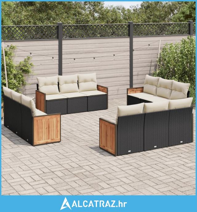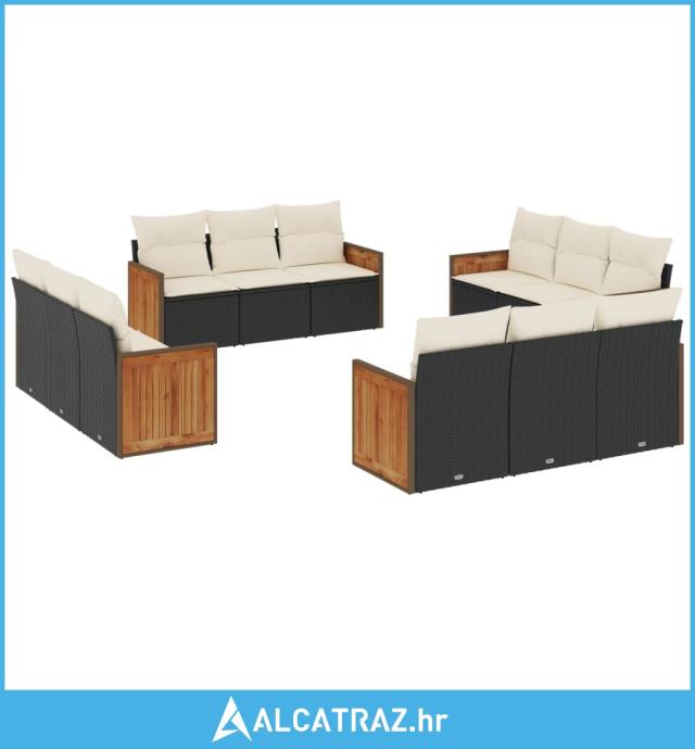 12-dijelni set vrtnih sofa od poliratana s jastucima crni - NOVO