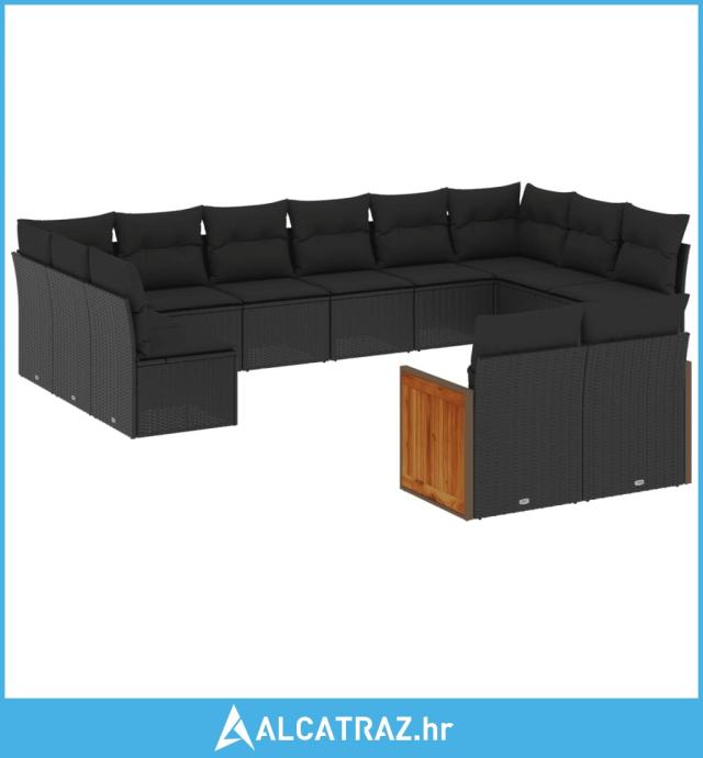 12-dijelni set vrtnih sofa od poliratana s jastucima crni - NOVO