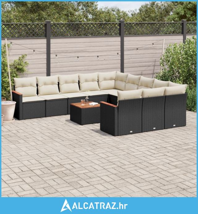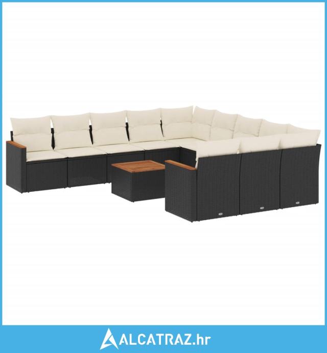 12-dijelni set vrtnih sofa od poliratana s jastucima crni - NOVO