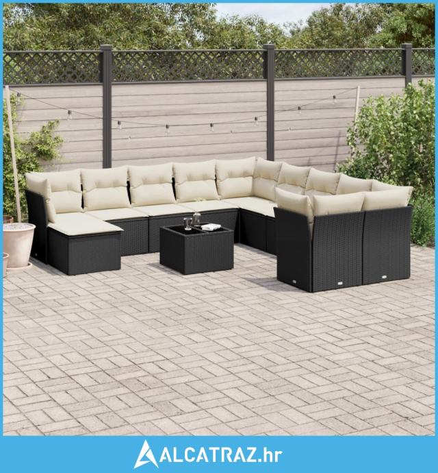 12-dijelni set vrtnih sofa od poliratana s jastucima crni - NOVO
