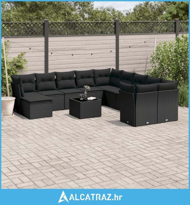 12-dijelni set vrtnih sofa od poliratana s jastucima crni - NOVO