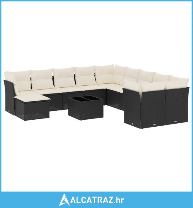 12-dijelni set vrtnih sofa od poliratana s jastucima crni - NOVO