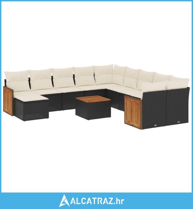 12-dijelni set vrtnih sofa od poliratana s jastucima crni - NOVO