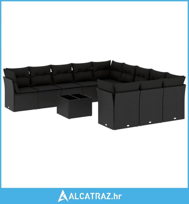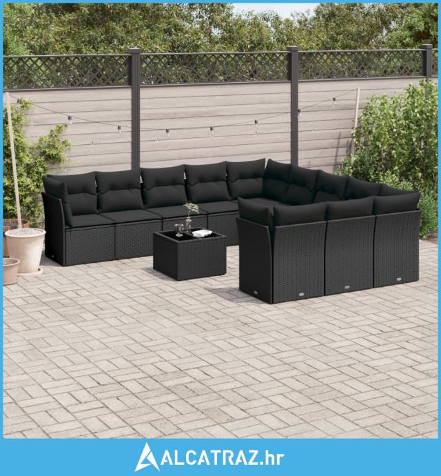 12-dijelni set vrtnih sofa od poliratana s jastucima crni - NOVO