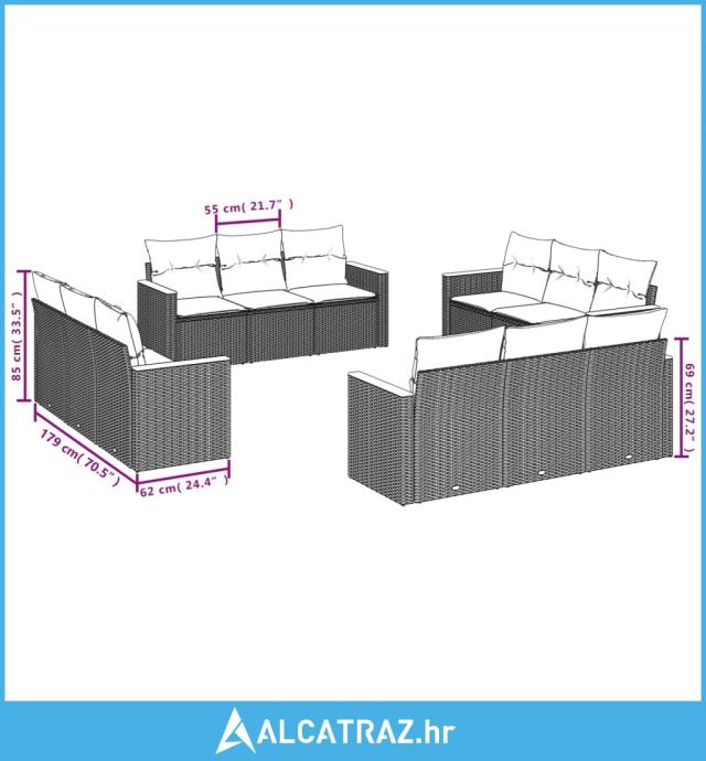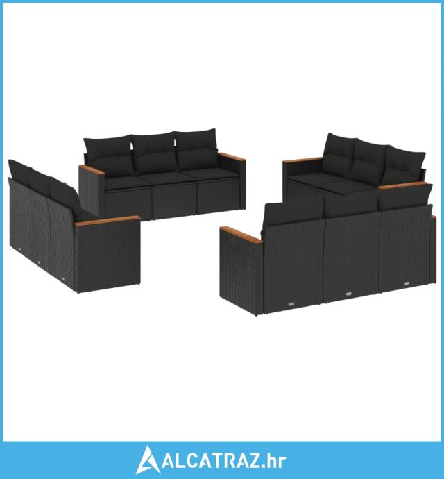 12-dijelni set vrtnih sofa od poliratana s jastucima crni - NOVO