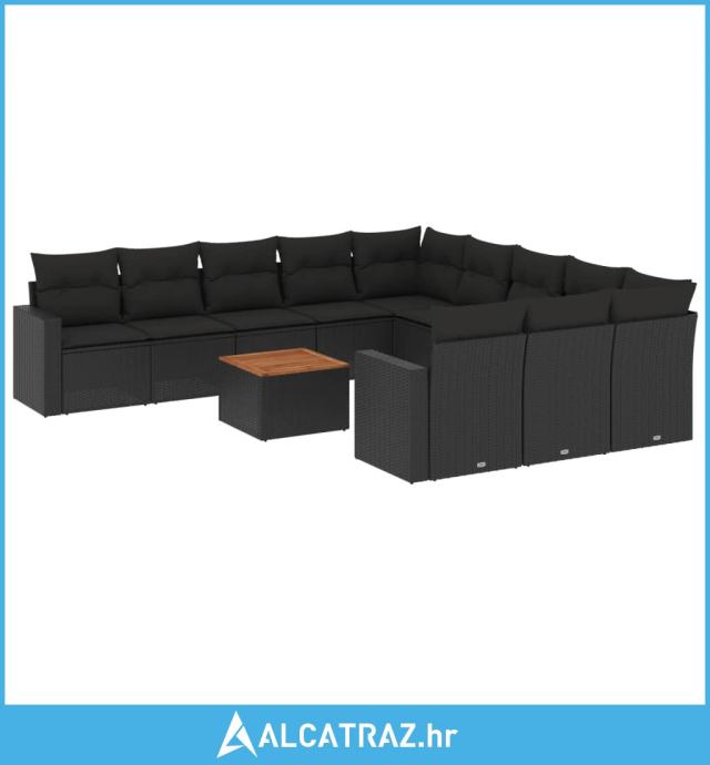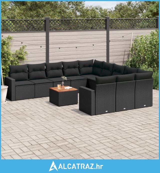 12-dijelni set vrtnih sofa od poliratana s jastucima crni - NOVO