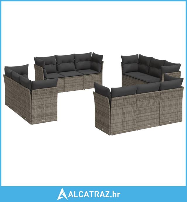 12-dijelni set vrtnih sofa od poliratana s jastucima sivi - NOVO