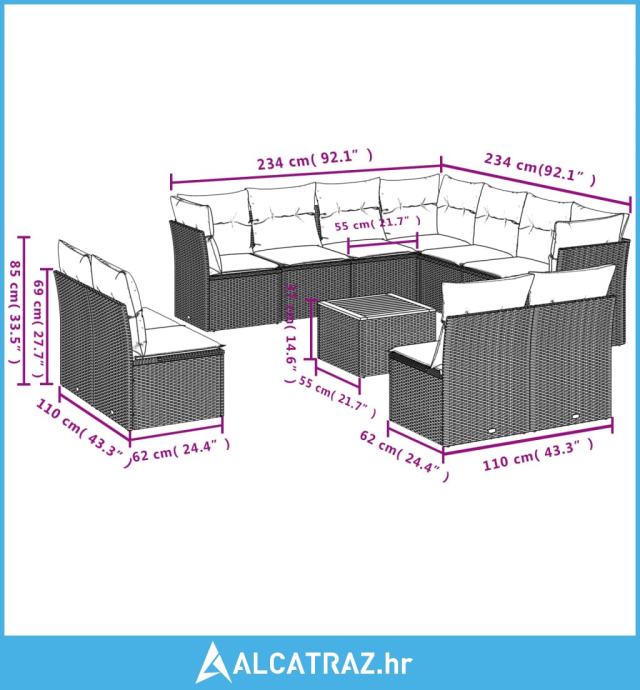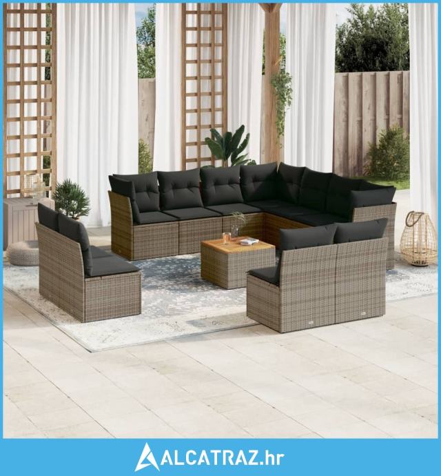 12-dijelni set vrtnih sofa od poliratana s jastucima sivi - NOVO