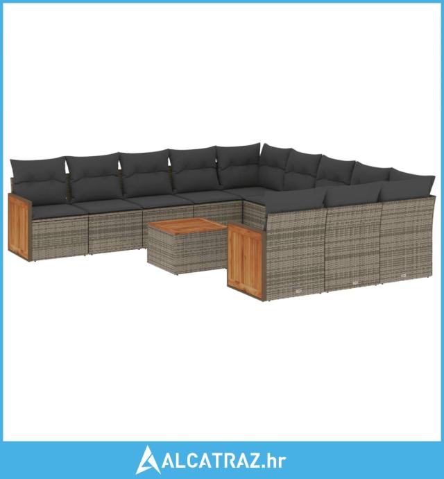 12-dijelni set vrtnih sofa od poliratana s jastucima sivi - NOVO
