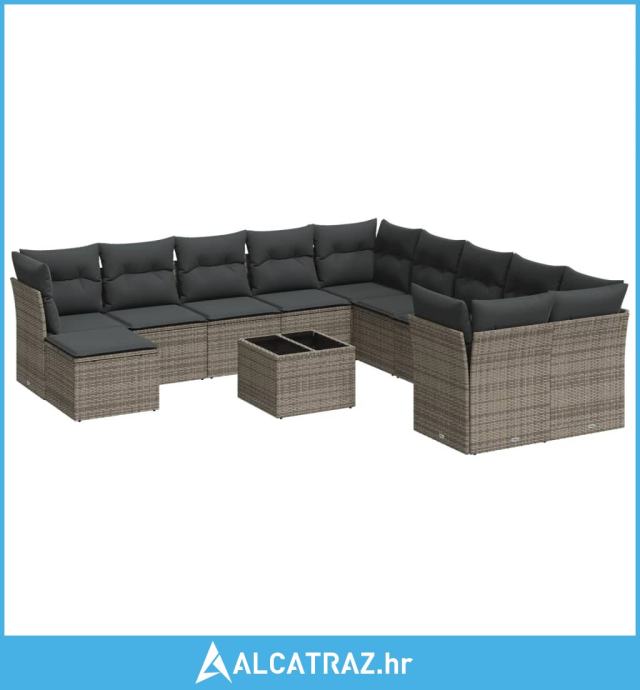 12-dijelni set vrtnih sofa od poliratana s jastucima sivi - NOVO