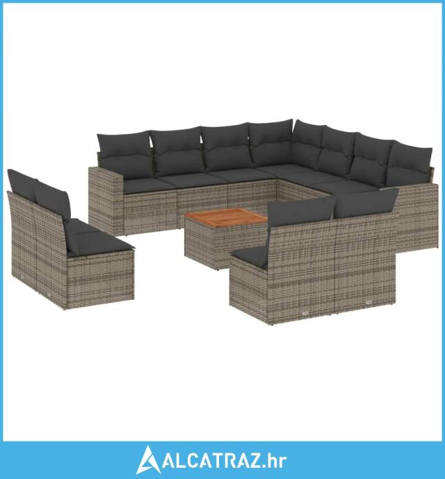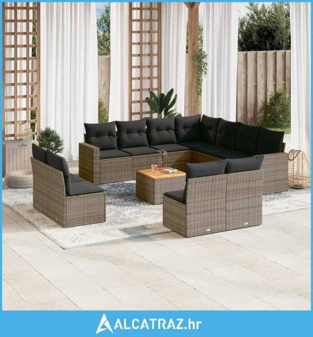 12-dijelni set vrtnih sofa od poliratana s jastucima sivi - NOVO
