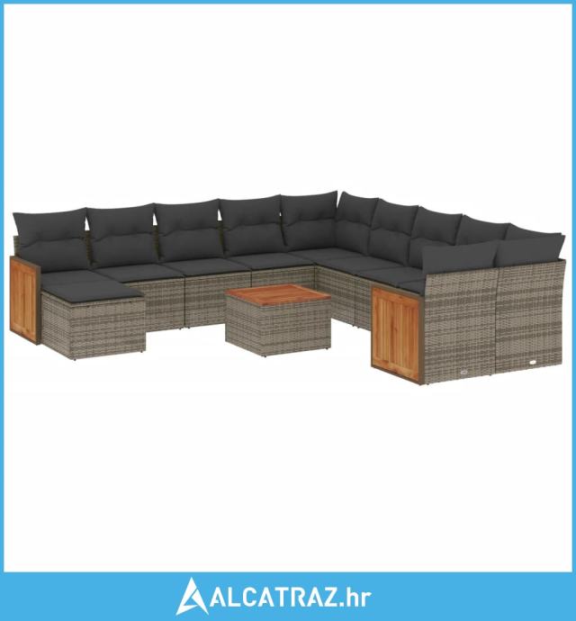 12-dijelni set vrtnih sofa od poliratana s jastucima sivi - NOVO