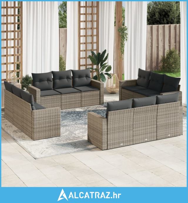12-dijelni set vrtnih sofa od poliratana s jastucima sivi - NOVO