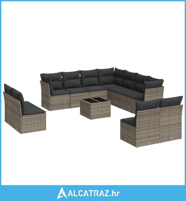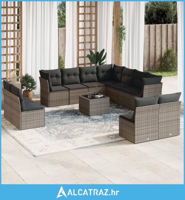 12-dijelni set vrtnih sofa od poliratana s jastucima sivi - NOVO