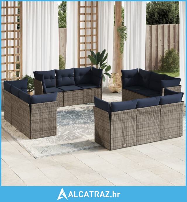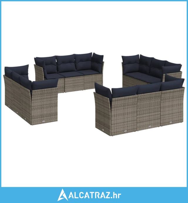 12-dijelni set vrtnih sofa od poliratana s jastucima sivi - NOVO