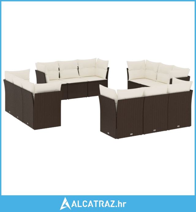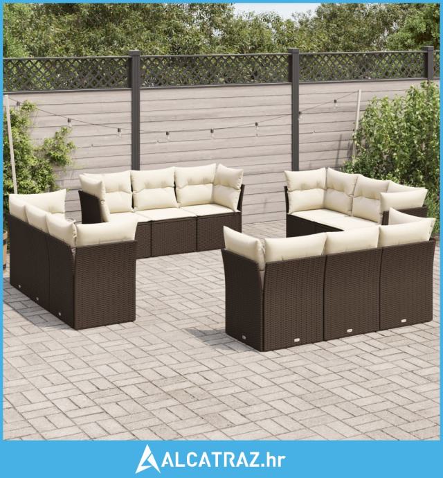 12-dijelni set vrtnih sofa od poliratana s jastucima smeđi - NOVO