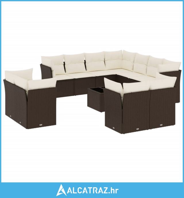 12-dijelni set vrtnih sofa od poliratana s jastucima smeđi - NOVO