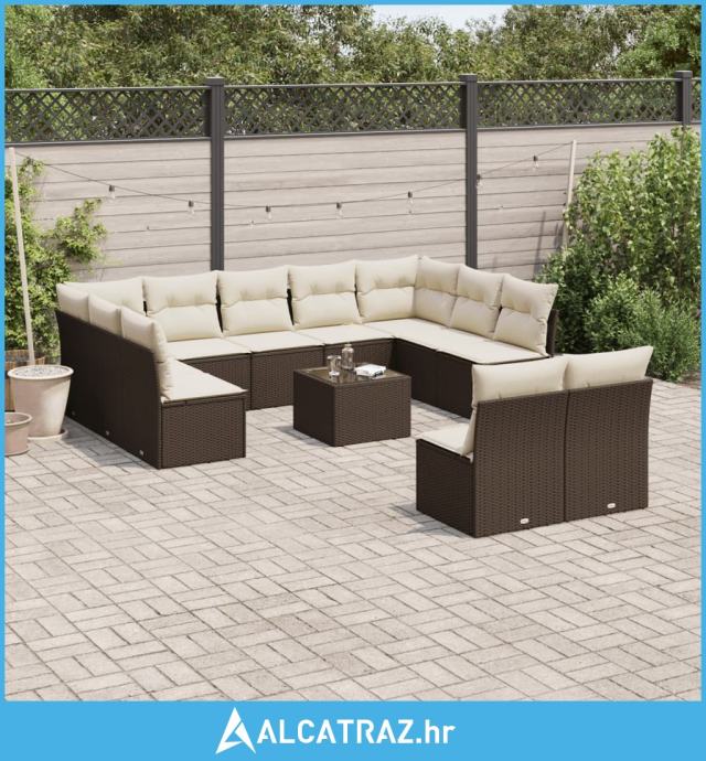 12-dijelni set vrtnih sofa od poliratana s jastucima smeđi - NOVO
