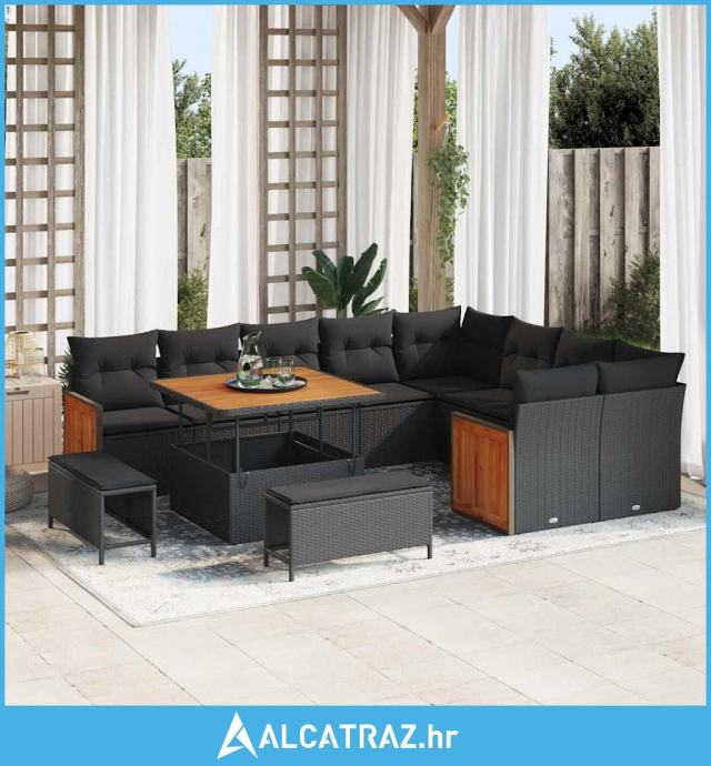 12-dijelni set vrtnog namještaja s jastucima crni poli ratan akacija -
