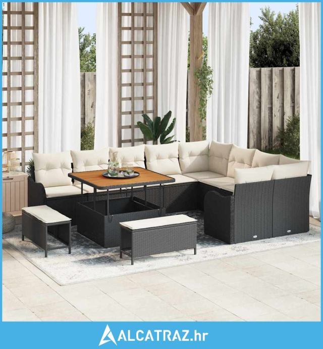 12-dijelni set vrtnog sofera s jastučićima Crni Poliratan Akacija - NO