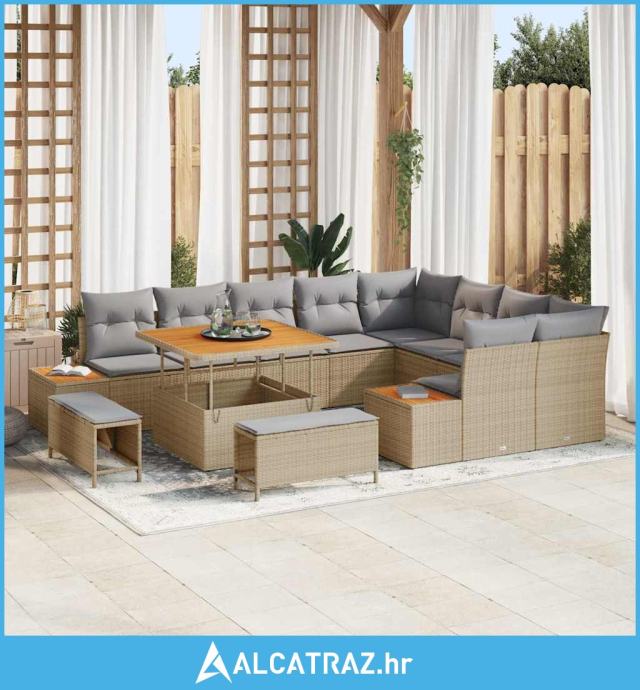 12 kom set vrtne sofe s jastučićima bež poli ratan akacija - NOVO