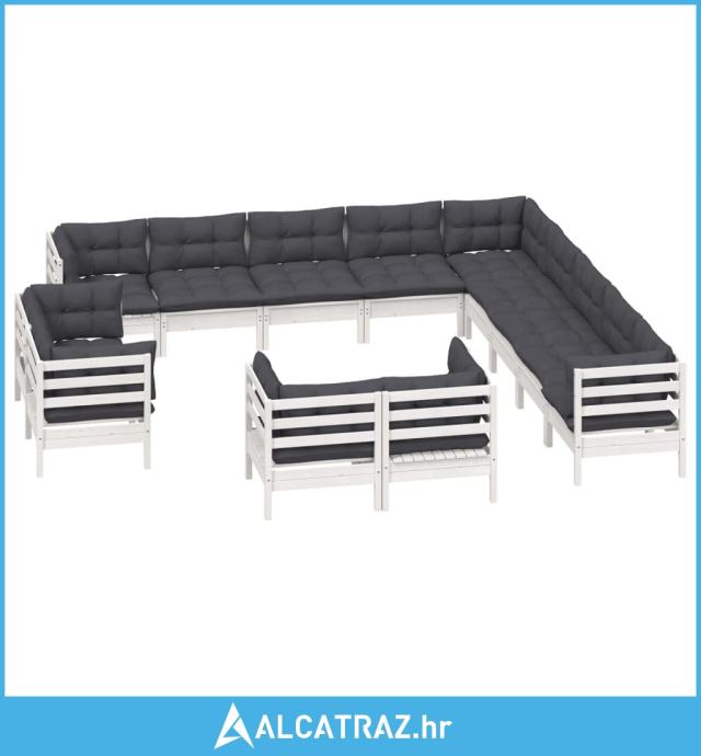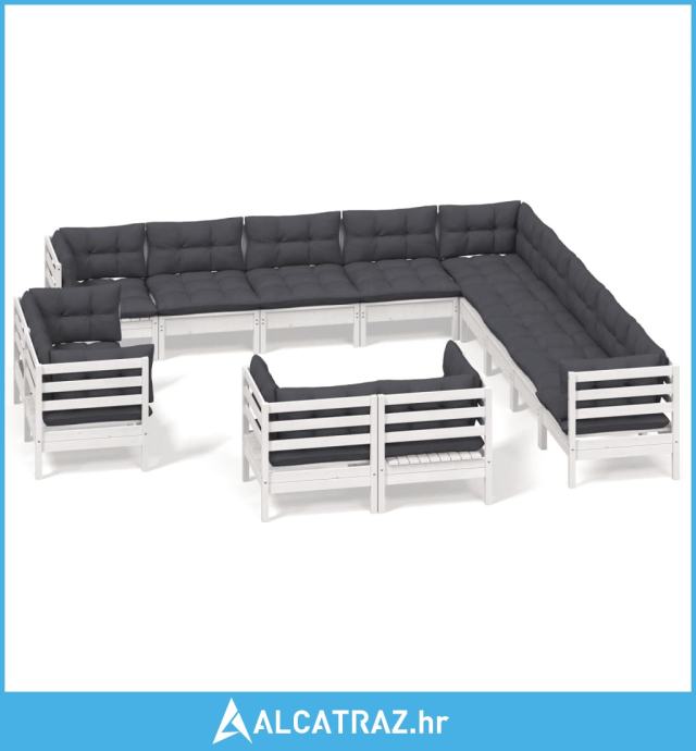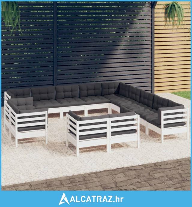 13-dijelna vrtna garnitura od borovine s jastucima bijela - NOVO
