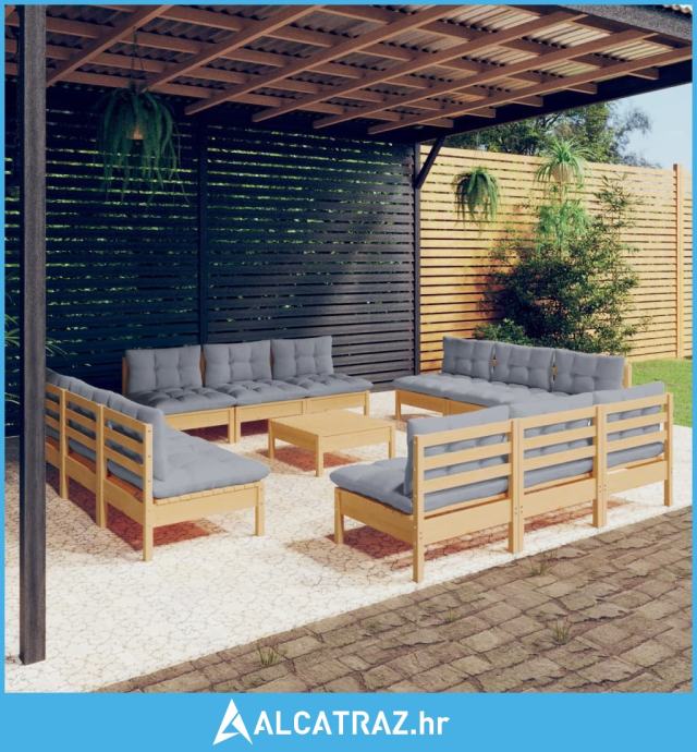 13-dijelna vrtna garnitura od borovine sa sivim jastucima - NOVO