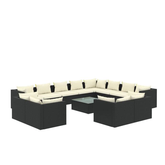 13-dijelna vrtna garnitura od poliratana s jastucima crna - NOVO