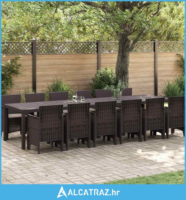 Ovaj set za obedovanje od 13 dijelova idealan je za jelo na otvorenom, spajajući stil i praktičnost. Čvrsta izrada od smeđeg poli ratana daje mu moderan izgled koji dodatno uljepšava svaku terasu, vrt ili balkon, što ga čini najboljim odabirom za obitelj ili okupljanje prijatelja.