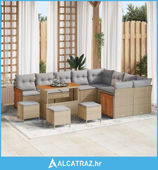 13-dijelni set vrtne sofe s jastučićima bež poli ratan akacija, 4-dije