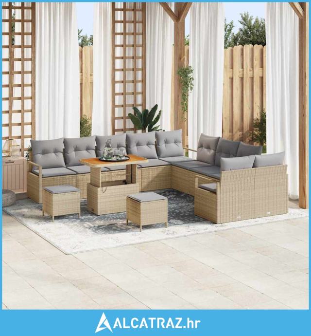 13-dijelni set vrtnih kauča s jastučićima Bež Poli ratan Akacija, 2-sj