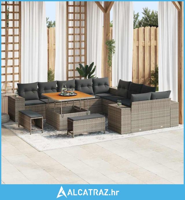 13-dijelni set vrtnih kauča s jastučićima sivi poli ratan akacija - NO