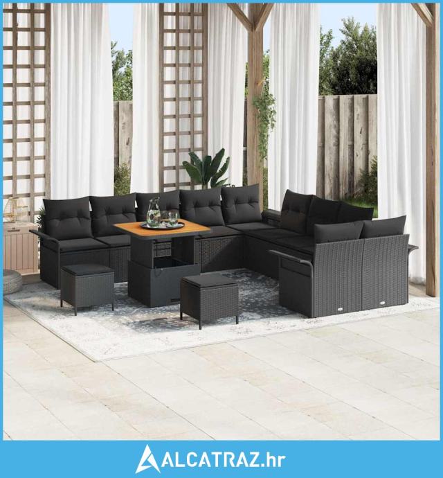 13-dijelni set vrtnih sofa s jastučićima Crni Poli ratan Akacija, 2-sj