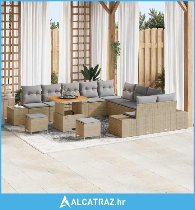 13-dijelni set vrtnih sofa s jastucima bež poli ratan akacija - NOVO