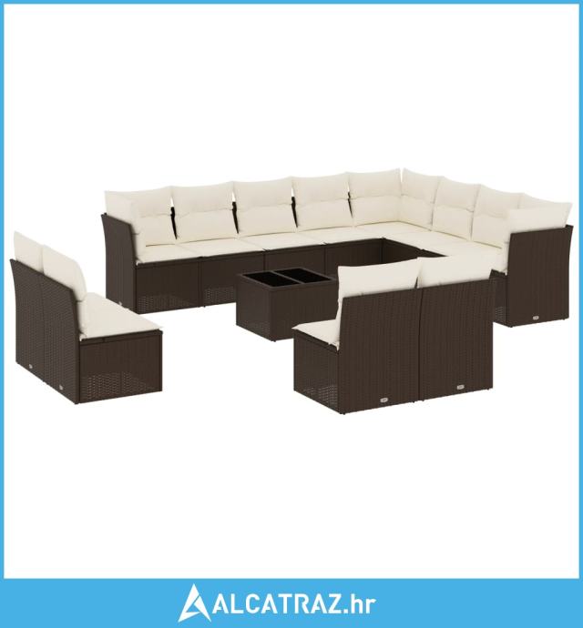 13-dijelni set vrtnih sofa s jastucima smeđi od poliratana - NOVO