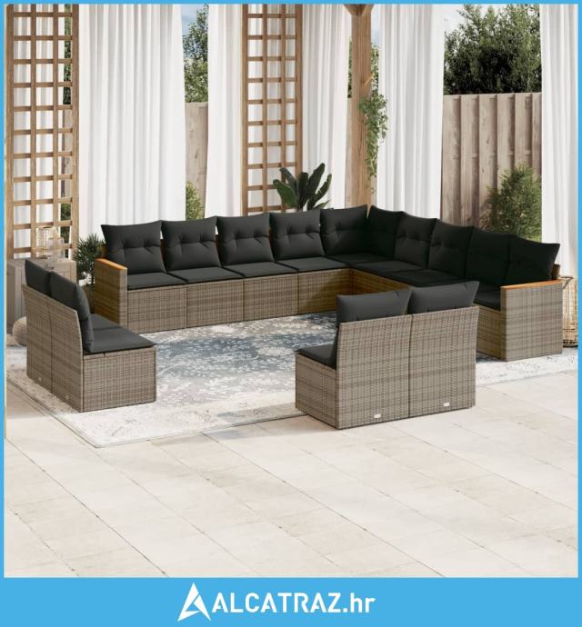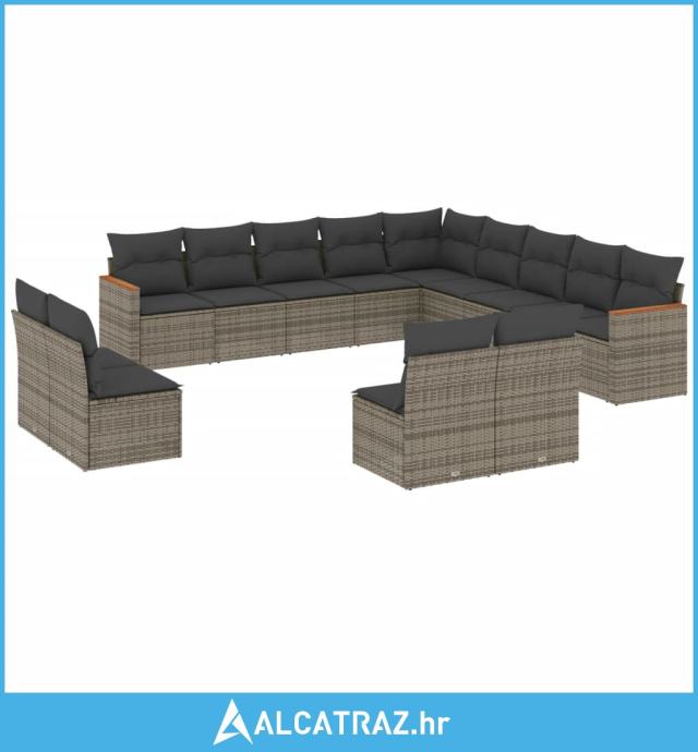 13-dijelni set vrtnih sofa od poliratana s jastucima sivi - NOVO