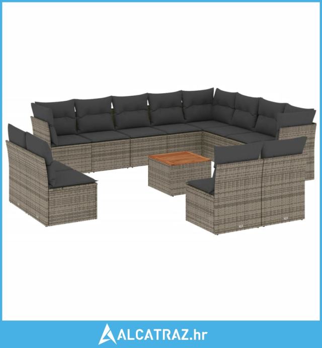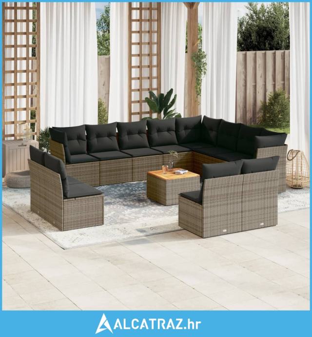 13-dijelni set vrtnih sofa od poliratana s jastucima sivi - NOVO