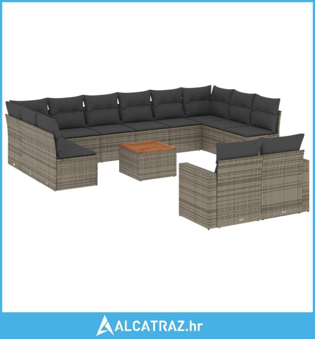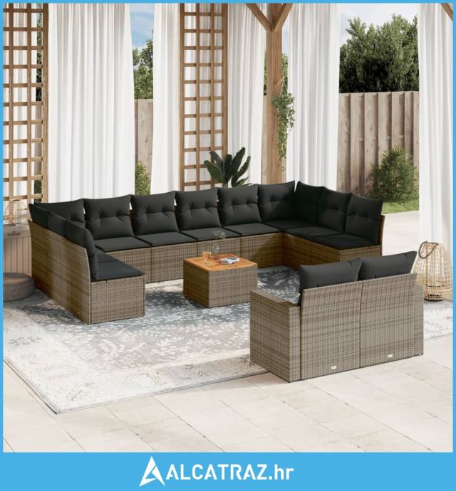 13-dijelni set vrtnih sofa od poliratana s jastucima sivi - NOVO