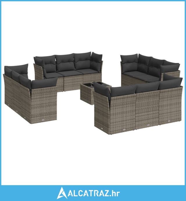 13-dijelni set vrtnih sofa od poliratana s jastucima sivi - NOVO