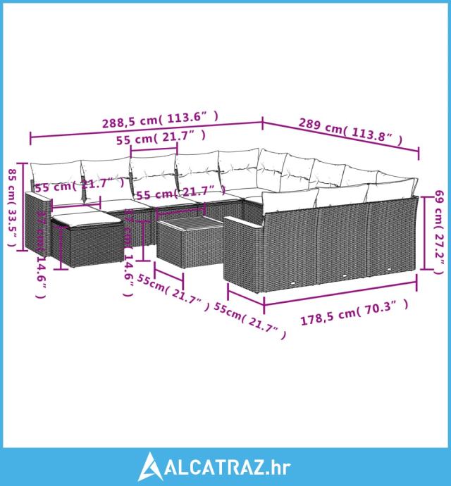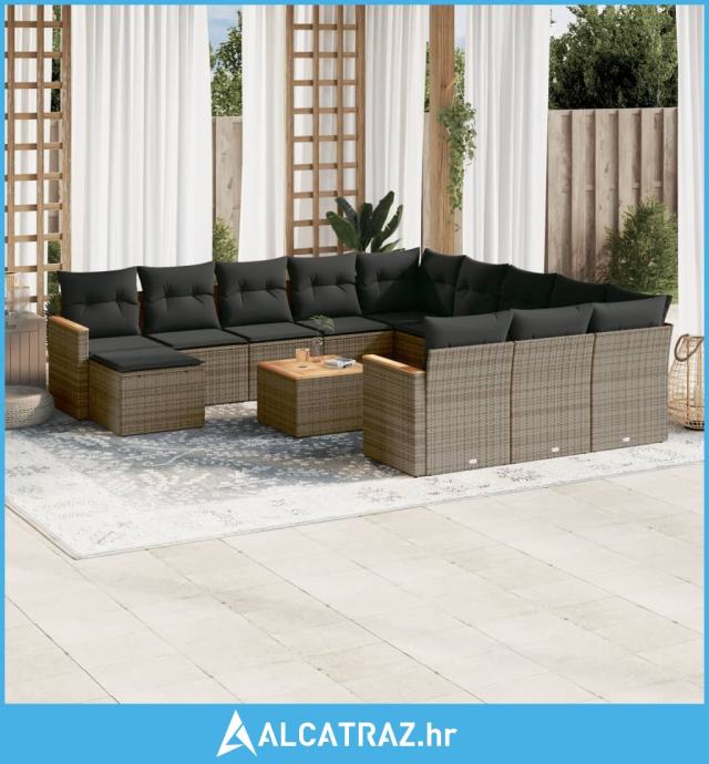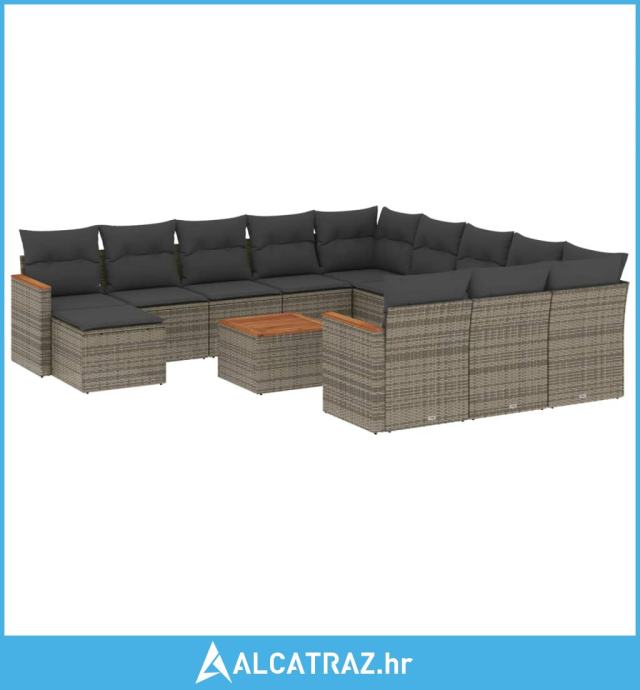 13-dijelni set vrtnih sofa od poliratana s jastucima sivi - NOVO