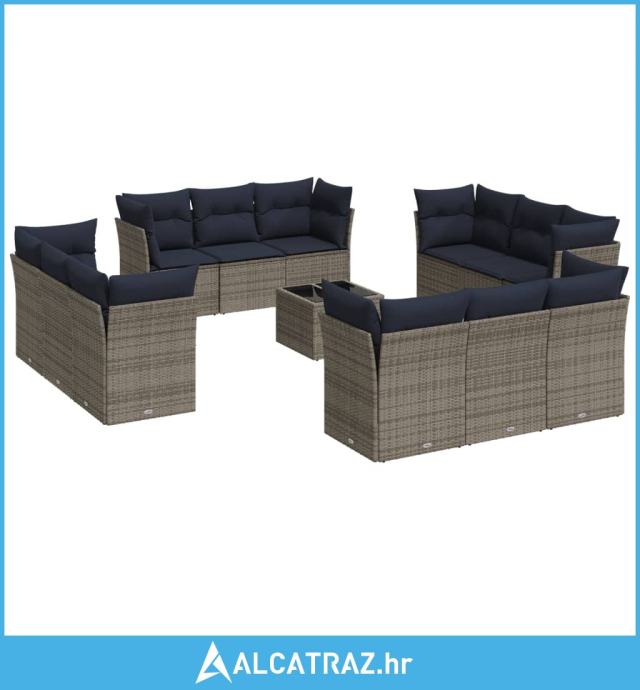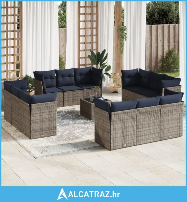 13-dijelni set vrtnih sofa od poliratana s jastucima sivi - NOVO