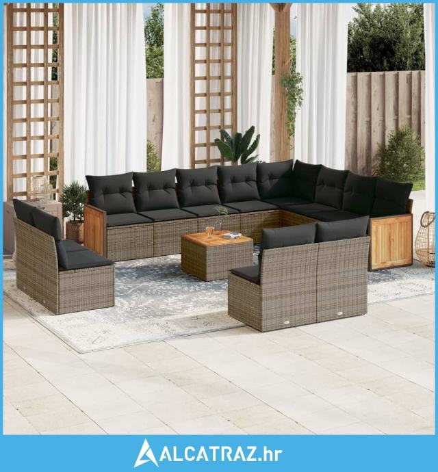 13-dijelni set vrtnih sofa od poliratana s jastucima sivi - NOVO