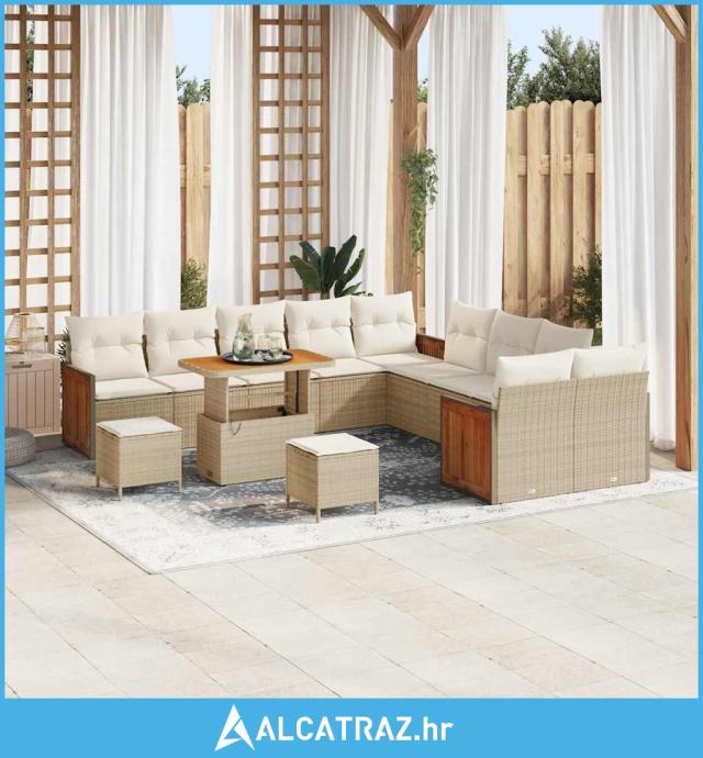 13-dijelni set vrtnih sofea s jastučićima bež poli ratana akacije - NO