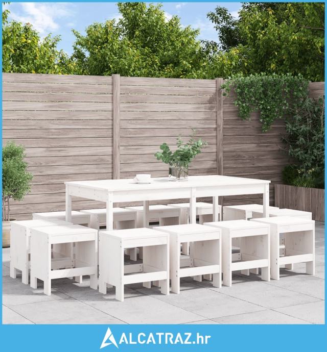 13-dijelni vrtni blagovaonski set bijeli od masivne borovine - NOVO