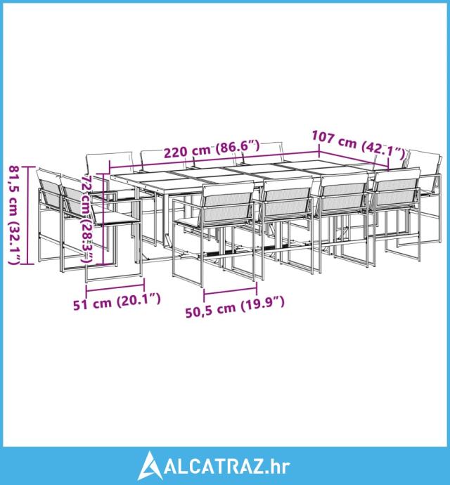 - Staklena ploča stola: Ploča vanjskog stola napravljena je od jakog i izdržljivog kaljenog stakla, što olakšava čišćenje vlažnom krpom i dodaje dašak elegancije vašem vanjskom prostoru.