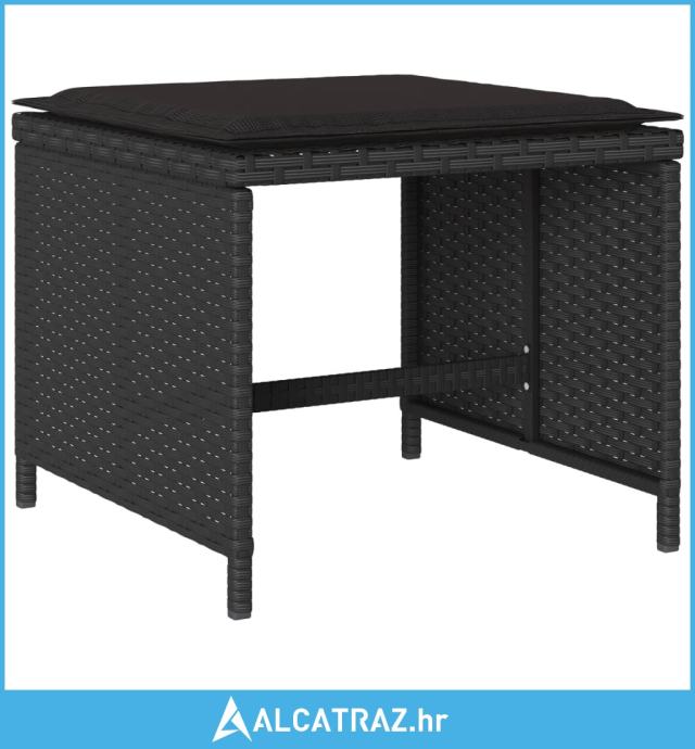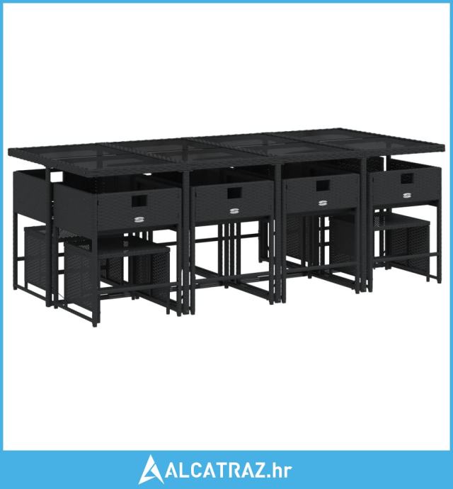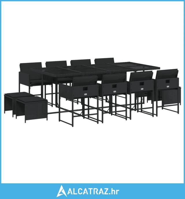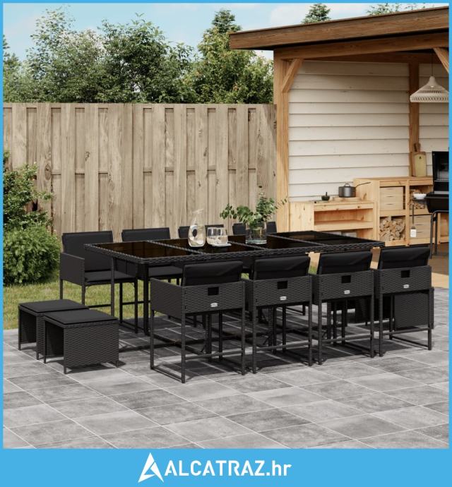 13-dijelni vrtni blagovaonski set s jastucima poliratan crni - NOVO