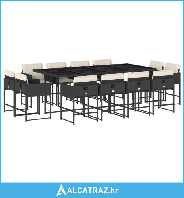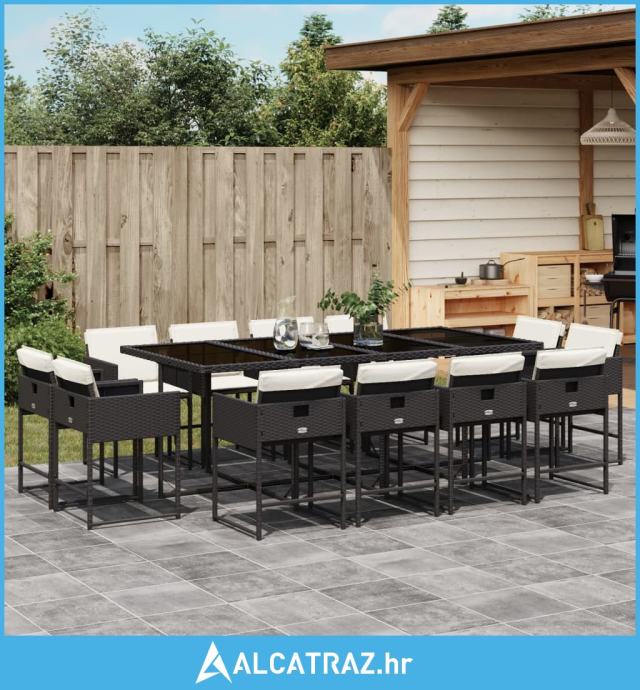 13-dijelni vrtni blagovaonski set s jastucima poliratan crni - NOVO